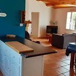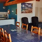 1の寝室のMaison 5 Pers A Noirmoutier, Proche Plage - Fr-1-823-46 バルバトルは,Gois Amusement Parkから徒歩10分以下です. 1のバスル-ムのヴィラは器具でいっぱいの台所とテラスを有しています.